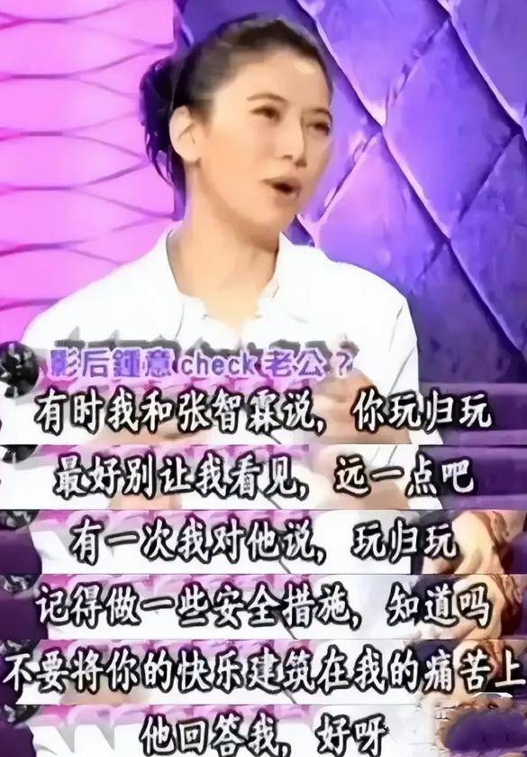 她的回答是“你玩归玩,最好别让我看见,远一点吧,还提醒张智霖做一些安全措施,不要将你的快乐建立在我的痛苦之上。”还自爆过自己怀孕的时候,张智霖天天不着家。