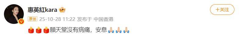 佘诗曼之前被问起许绍雄的情况,当场忍不住哭了;惠英红在社交平台发文“愿天堂没有病痛、安息”;江美仪念旧地提到“永远怀念你的笑容”,还叫了他圈里的老称呼“Benz哥”。
