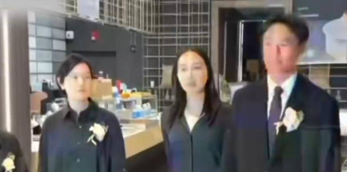 追思会结束时,杨祐宁抱着父亲的骨灰盒走出会场,门口突然响起整齐的"杨老板再见"——