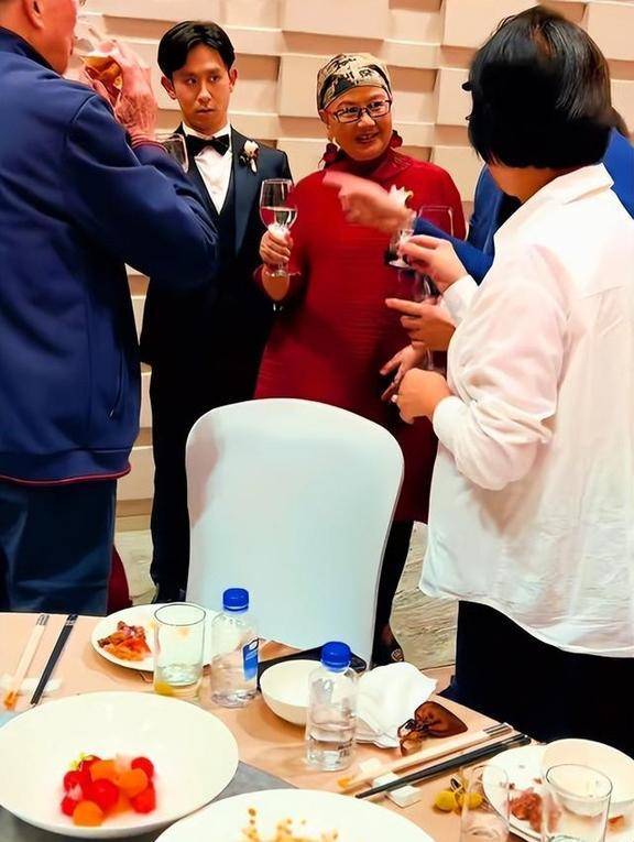 整个婚宴上,卢璐简直是最活跃、最开心的家长,始终乐呵呵的,她笑容满面,热情洋溢地和亲家、客人们聊天,还亲切地挽着女婿的手,一起给大家敬酒。