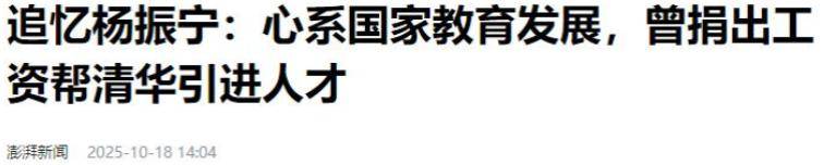 杨振宁去世这几天,新华社、红星新闻,甚至连央视新闻都轮番发布杨振宁生前的经历,对我国的贡献,这足以看出国家对他的重视。
