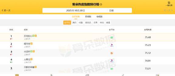 电视剧全网热度榜,《暗河传》跌至第二,第一热度高达75.48