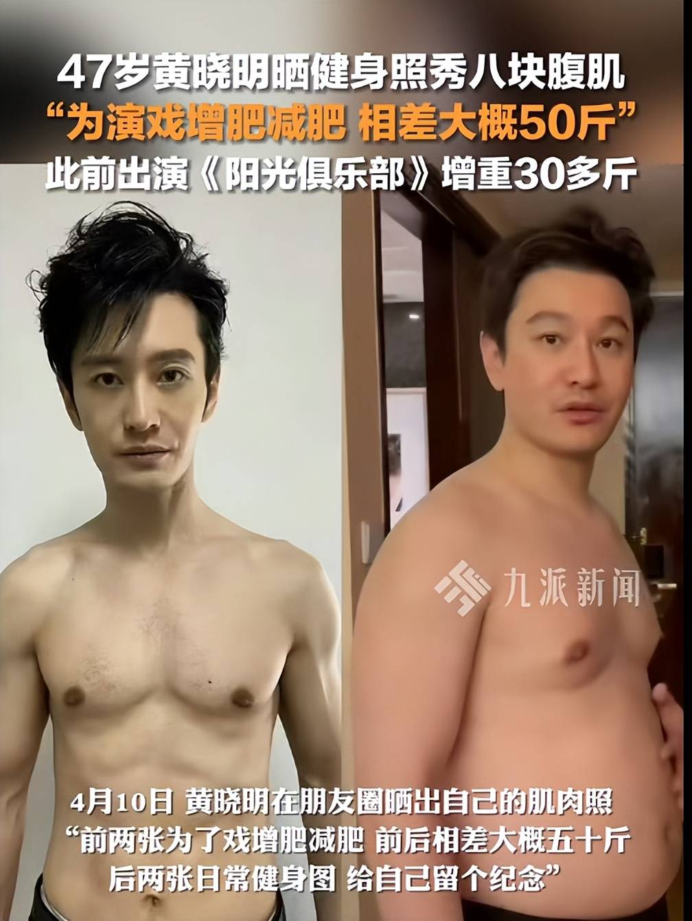 据悉,黄晓明曾为在电影《阳光俱乐部》饰演残障人士,增重30多斤。