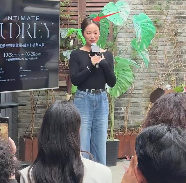 当时江一燕的状态非常不好,头顶的发际线非常明显,远远看上去,就好像秃了一大块似的。