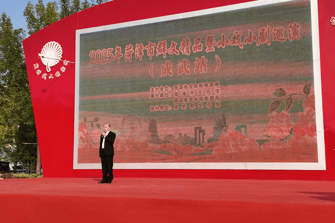10月22日下午,2025年菏泽市群文精品暨小戏小剧巡演启动仪式在成武县摩天轮广场举行。活动由菏泽市文化和旅游局主办,菏泽市文化馆、各县区文化和旅游局、鲁西新区文化卫生服务中心承办,各县区文化馆协办。市文化和旅游局和成武县有关领导出席活动。