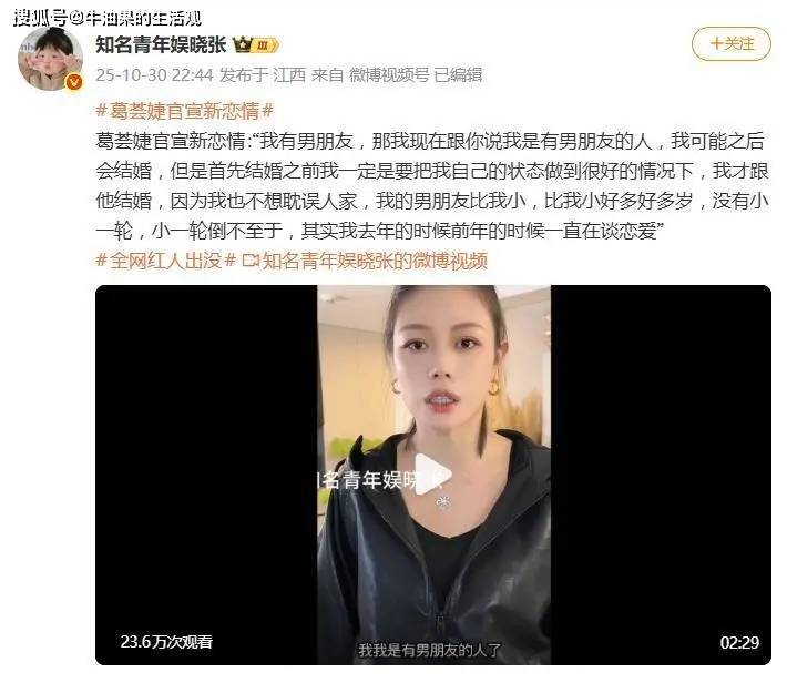 葛荟婕说她的男友比她小很多岁很多岁,没有一轮那么多,反正在一轮以内,大家自行想象。