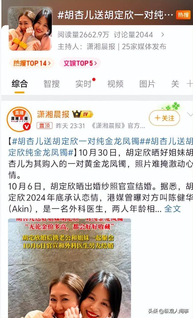 这种交情,难怪胡杏儿会在金价如此昂贵的情况下,还送龙凤镯了。