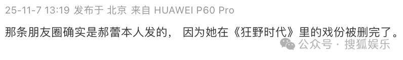 在郝蕾朋友圈被曝出后,辛芷蕾迅速现身发长文回应: