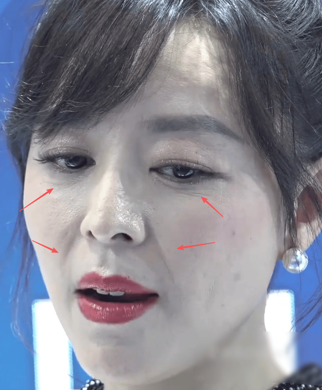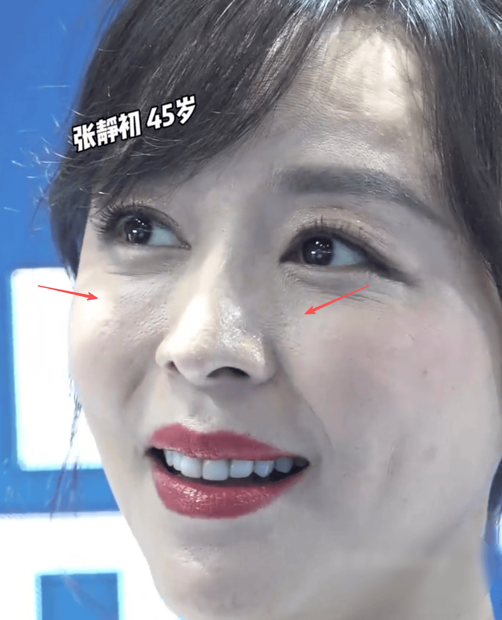 另外,张静初面部皱纹也很明显。她眼窝深,眼窝处布满了细纹,鼻翼两侧有着深深的法令纹,连酒窝处都能看到明显的皱纹痕迹。除此之外,张静初的脸上还有一些圆圆的斑点,不知道是不是随着年龄而出现的衰老。尽管张静初整场活动中言笑晏晏,但是看上去依旧憔悴且没有精气神。