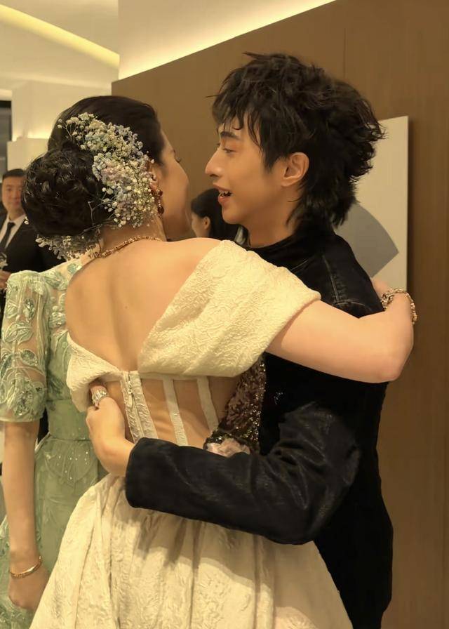双方拥抱的时候,恩利还特别小心,没有踩到刘亦菲的裙摆。
