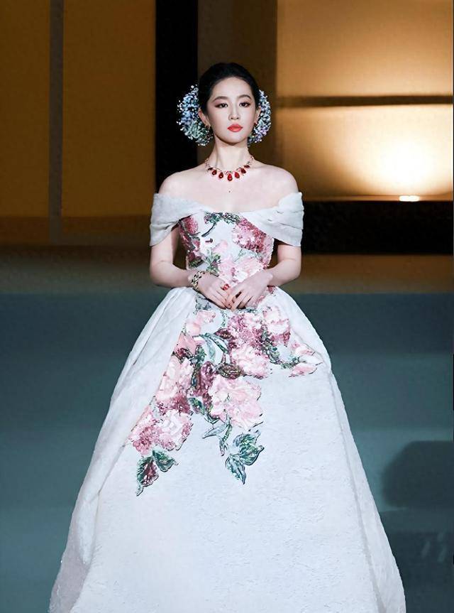 当刘亦菲压轴登场的时候,那件裙摆缀满了3000朵手工保鲜花的裙子,瞬间吸引了众人的视线。