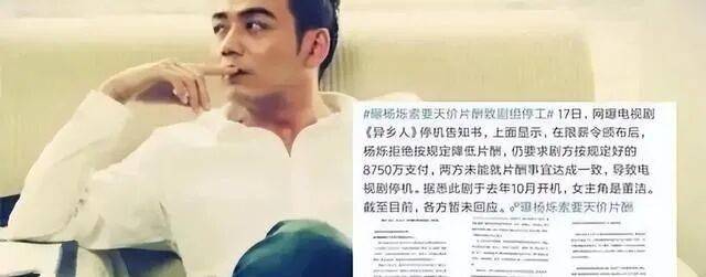 如果说绯闻只是伤了口碑,那顶风贪薪就是直接触碰了行业红线。2018 年广电总局刚下发限薪令,明确规定演员单集片酬不能超过总成本的 40%,最高不超过 5000 万,央视更是多次强调 “行业自律” 的重要性。可杨烁偏要 “顶风作案”,他在《异乡人》剧组已经签好 8750 万片酬的合同,限薪令出台后,剧组找他协商降薪,他不仅坚决不松口,还直接罢演导致剧组停拍。