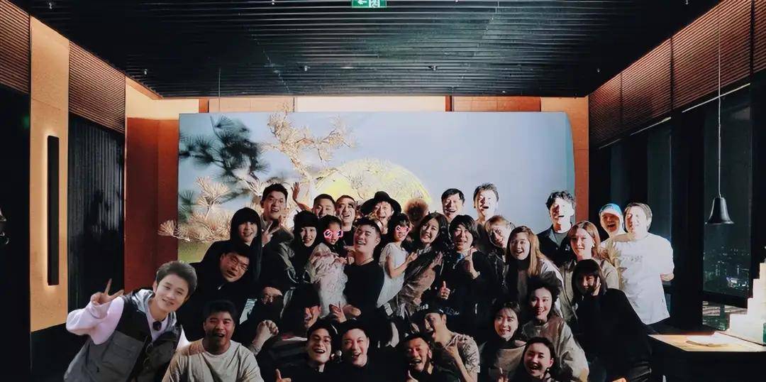 未能到场的王勉被贴心P进合影,虽然技术略显粗糙,但这份心意令人感动。邓超则站在后排笑逐颜开,标志性帽子搭配灿烂笑容。