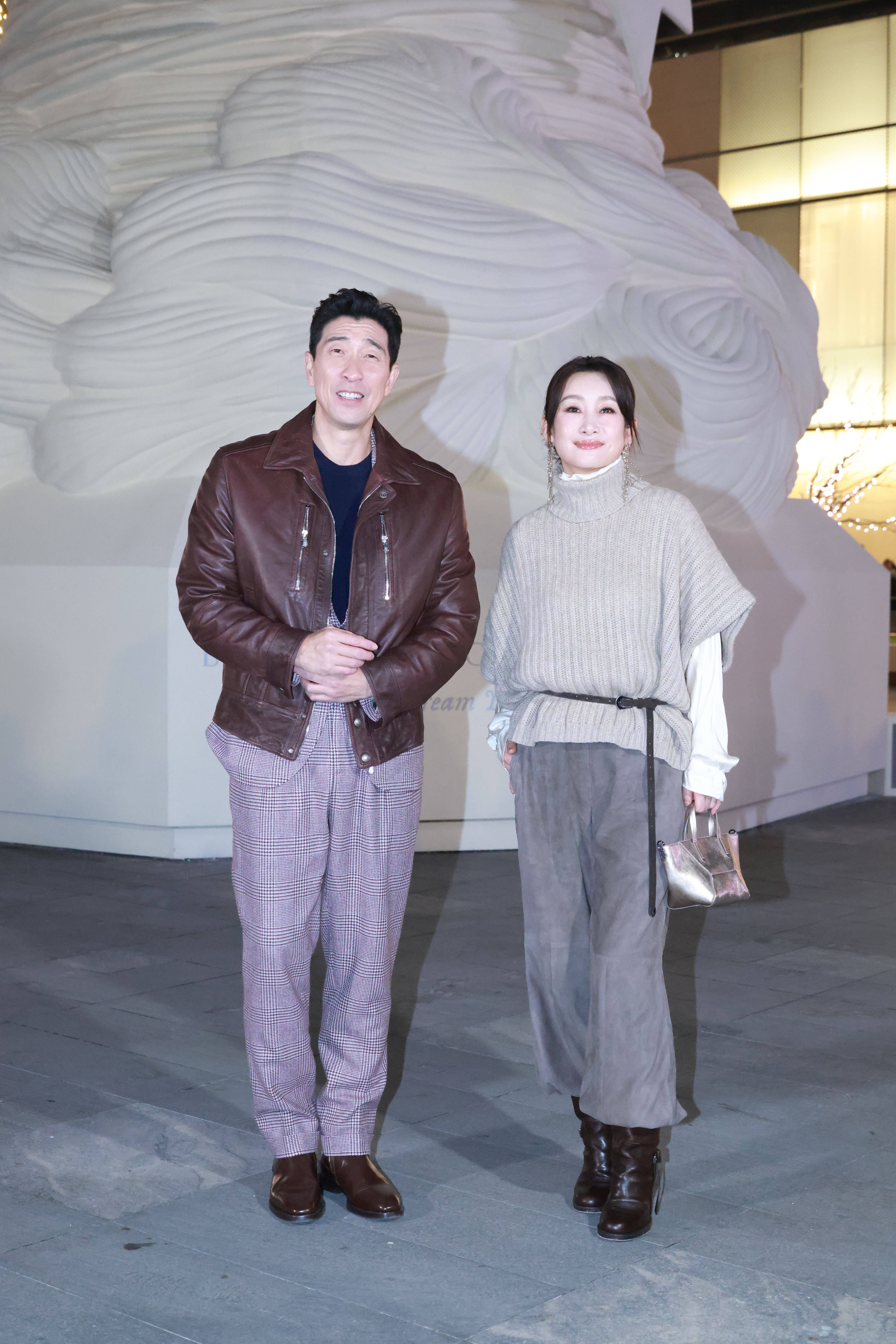 袁姗姗则是蓝色风衣造型,松弛自信。