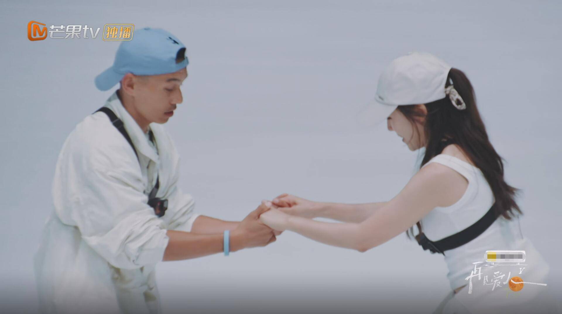 在滑冰的过程中,梁淞和何美延手牵手一起玩,可以说是相当浪漫。