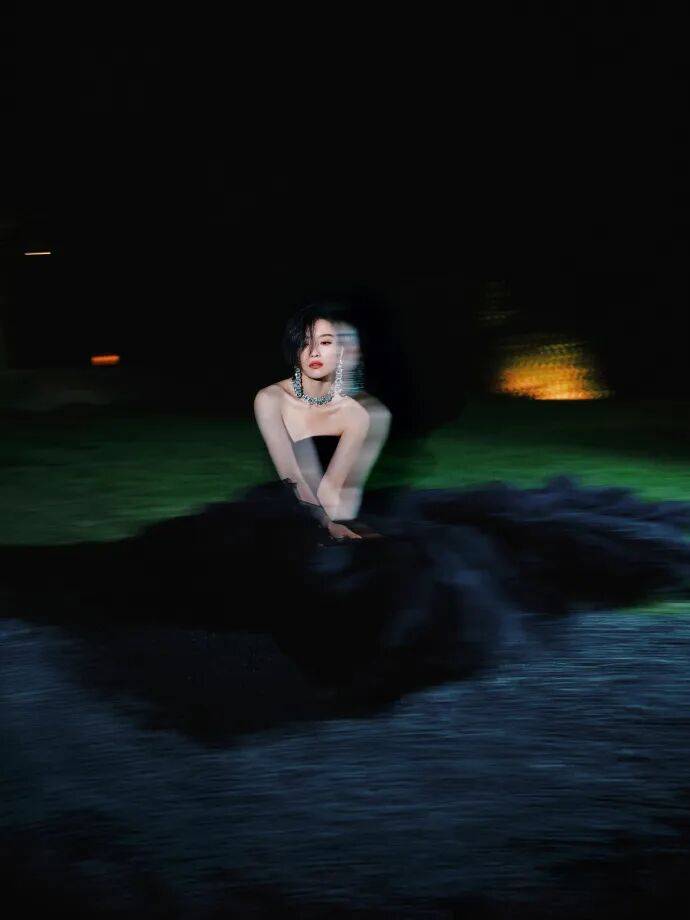 倪妮身穿一袭黑色抹胸衣裙,她单手抚摸自己的嘴唇,绝对性感撩人!