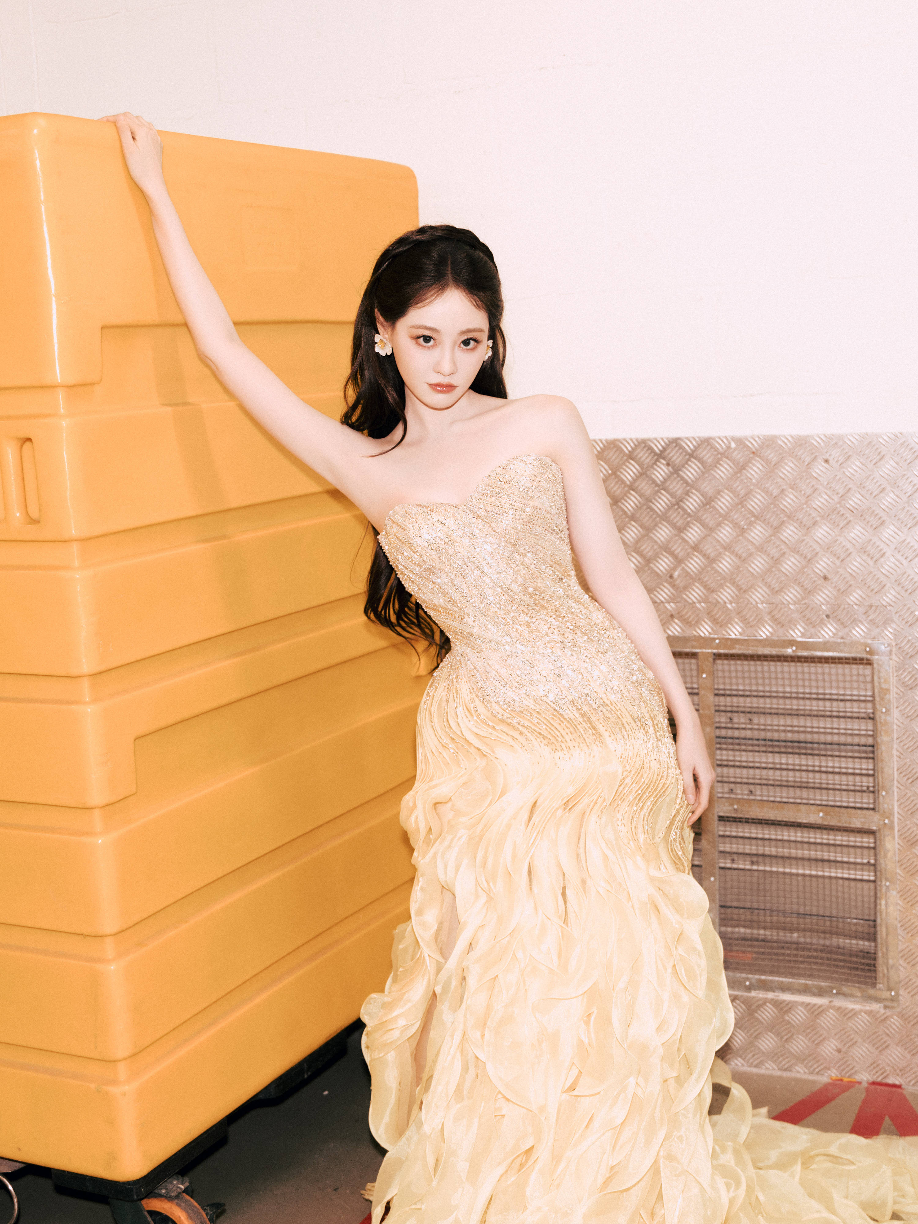 搜狐娱乐讯 11月16日,祝绪丹穿浅黄色公主裙现身时尚活动,照片里的她黑发红唇,对着镜头做出搞怪的表情。