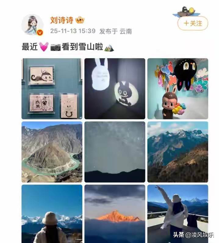 但刘诗诗现在的心情全然没有受到影响,还去云南看雪山了。