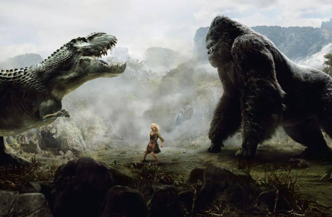 “1933年美国,经济大萧条和盲目的探险精神激励著每个人去探索陌生的领域,开拓未知的生存空间。漂亮的女演员安日益感觉到自己正处于纽约沮丧的气氛之中,就在事业低落的时候,一位野心勃勃的电影制作人卡尔将好运带给了她,她将成为一部最新制作影片的主演,并且影片将会在Skull岛上完成拍摄,安希望这座靠近苏门达拉岛的世外桃源会带给她一个充满刺激和兴奋的旅程。意外加偶然,轮船最终搁浅在了卡尔的理想目的地——骷髅岛。可还没等卡尔激动地想开始自己的巨制拍摄,一群突如其来的土著野人的疯狂袭击便让几名成员丧生。好不容易逃离野人魔爪启航逃走,娇小的安却被抓走了。原来这名字都很诡异的骷髅岛果然是凶险重重,那些野蛮土著自不必说了,恐龙、野兽更是遍地都是。为了救安,大家不得不又返航回去。被土著野人当作祭品的安不禁失声尖叫。尖叫声却意外引来了金刚的‘关注’,这只巨大无比、连凶悍的恐龙也怕它几分的传奇猩猩,偏偏钟情于安。然而,它不会知道的是,这却是它悲剧命运的开始……”