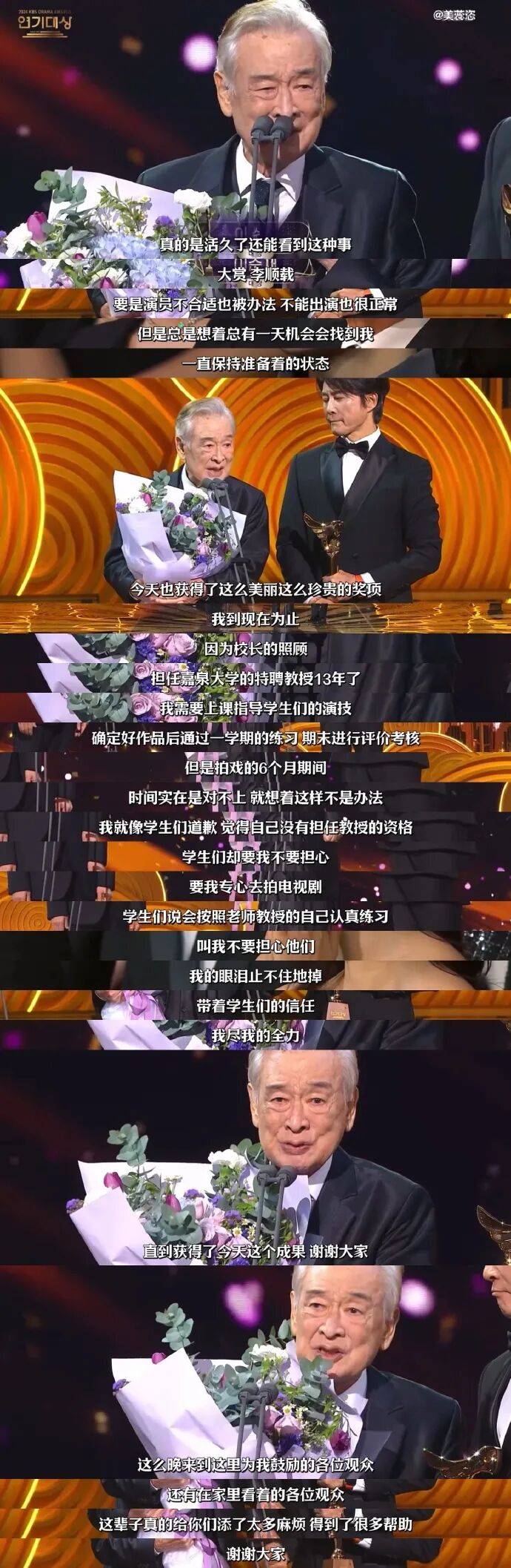 今年年初的时候李顺载凭借《狗话》拿到了kbs大赏,成为历代最高龄大赏得主,也是他人生最后的颁奖礼。