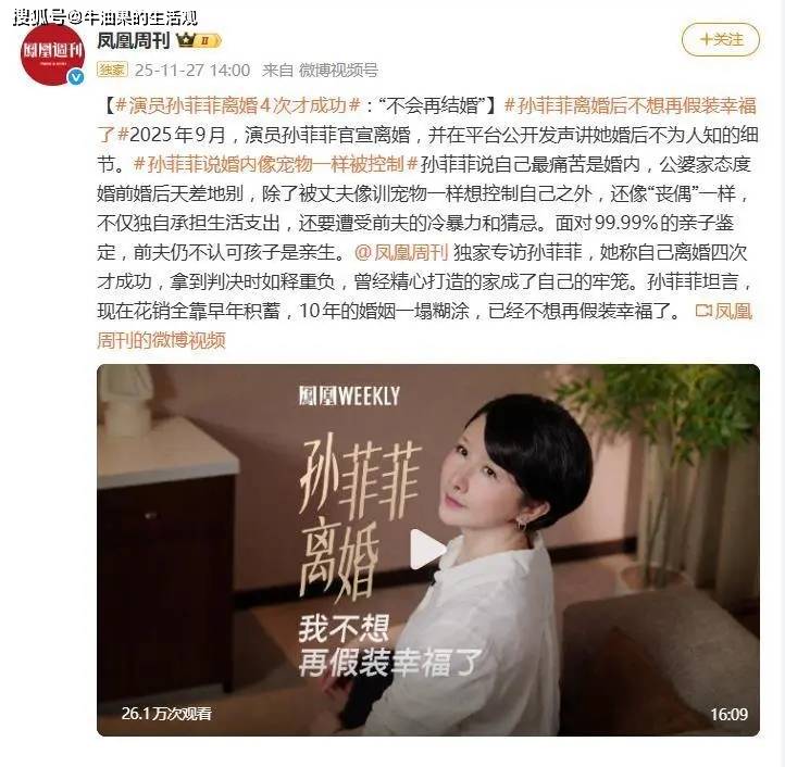孙菲菲丈夫是美籍身份,不断拖延司法进程,就是不想让她好过。孙菲菲起诉了四次,才终于等到了离婚判决书。