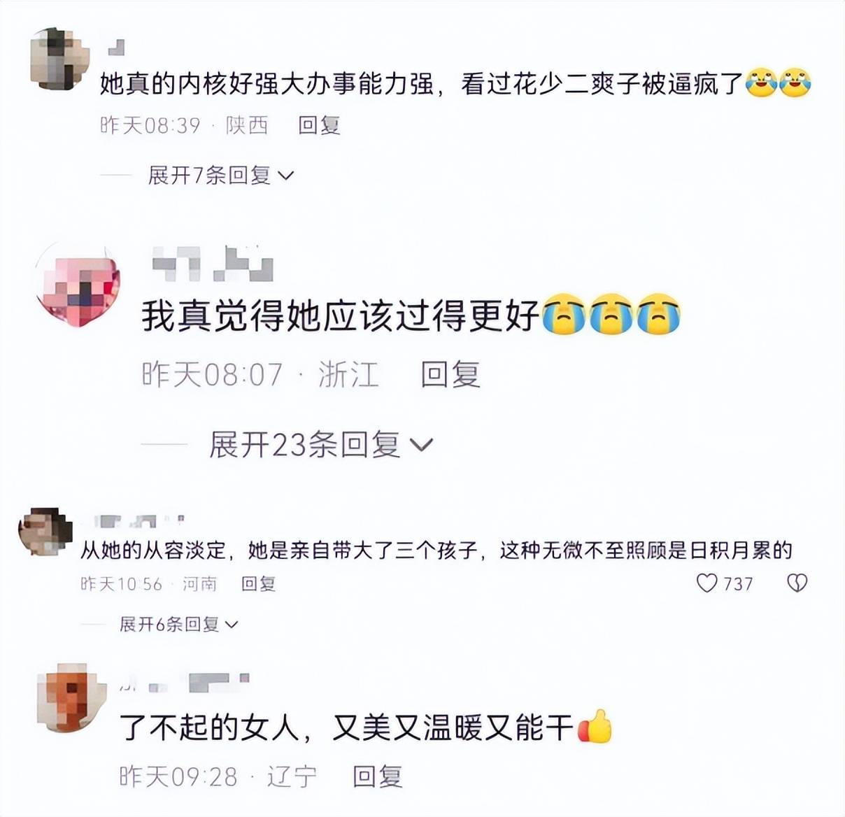 随着《一路繁花》的热播,观众逐渐发现了她不为人知的一面。节目初期,她带着大包小包的行李现身,声称要照顾好每一位姐姐,许多人猜测这或许是一场“洗白”人设的表演。