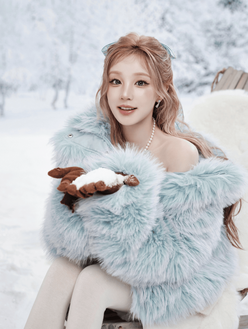 宋雨琦手捧雪花,尽显雪景里的俏皮灵动。