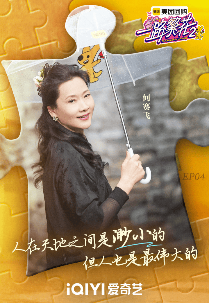 何赛飞的锐度来自艺术家的敏感和特立独行。旅程初期嘉宾们尚处于磨合、试探彼此性格的阶段,但何赛飞总是干脆利落地袒露了自己的脾气。第一站她因为行程制定效率低、包车出发时间推迟连连催场;面对草原念起诗,尽显艺术情操;因使用多年的行李箱坏掉而伤感落泪……感性的、冲动的、敏感的、热烈的一切都被直白地展现。