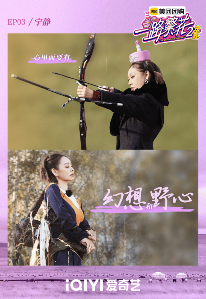 相比节目中的其他几位姐姐,宁静此前在综艺中的暴露是更多的。某种意义上,综艺塑造了她在大众中的印象。第一次是在《花儿与少年2》,大家看到了她强势、直率的一面;《乘风破浪》是宁静事业的一个新转折,也为她留下了更有魅力的公众形象,在这档节目里,她努力练习唱跳,颇有队长风范地带领着团员拿下多场胜利,她敬业、靠谱的一面被记住,也凭借这档节目成为中女力量的代表。