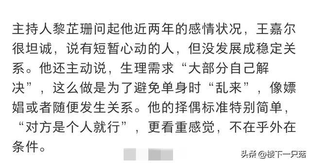 于是王嘉尔主动聊起了自己的恋爱经历,并分享了自己为爱做过的一些“傻”事。在提到自己现在没有对象时,生理需求都是自己解决时,王嘉尔的真诚和坦率,让对面的主持人都短暂的怔住了。