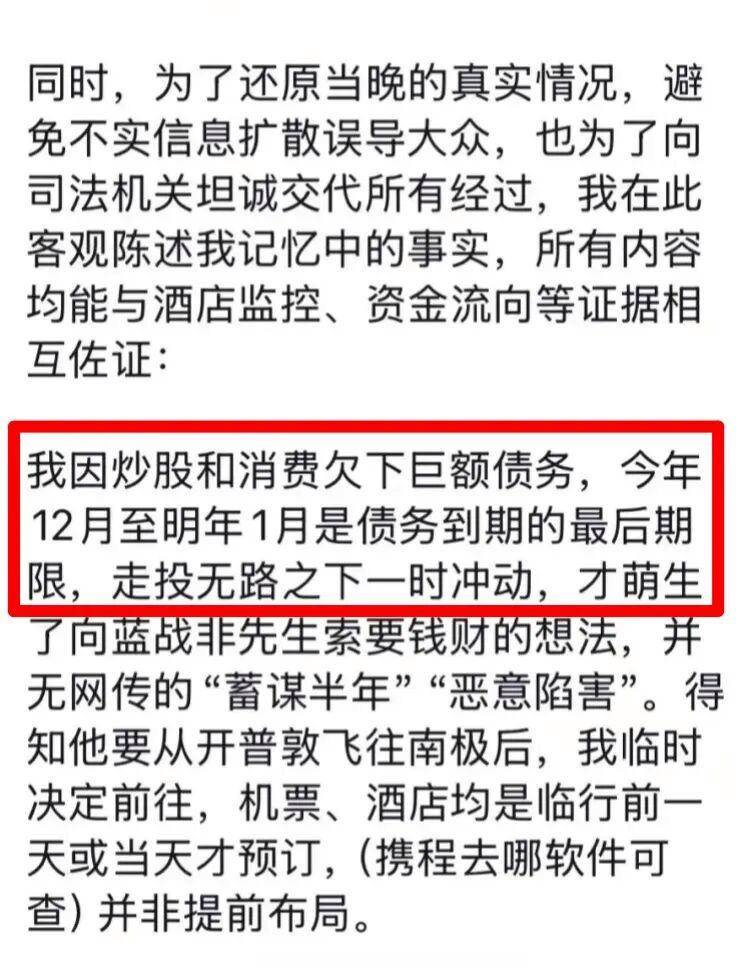他自述今年12月到明年1月是债务到期的最后期限,一时冲动才找蓝战非“要钱”。