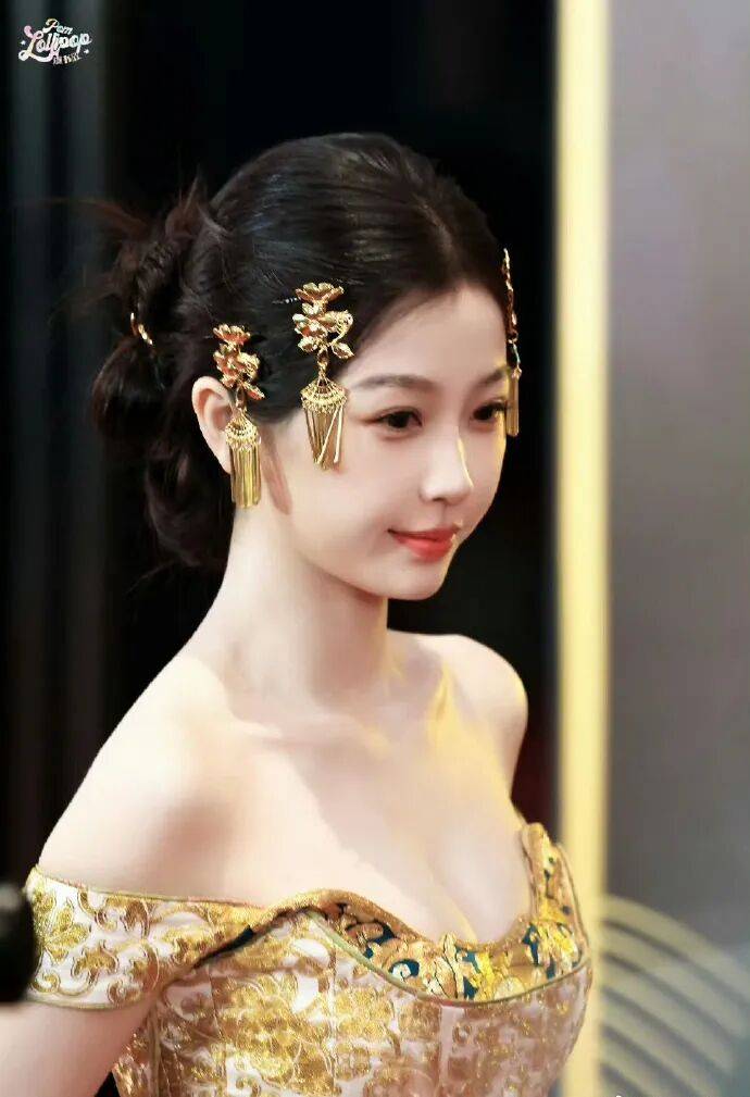 虞书欣身穿鎏金刺绣礼服,俏脸甜美可爱,盘发簪花造型,这位女星露出傲人的事业线,单手比划着爱心的动作,显得又纯又欲。她的魔鬼身材性感火辣,瞬间引爆多国热搜。