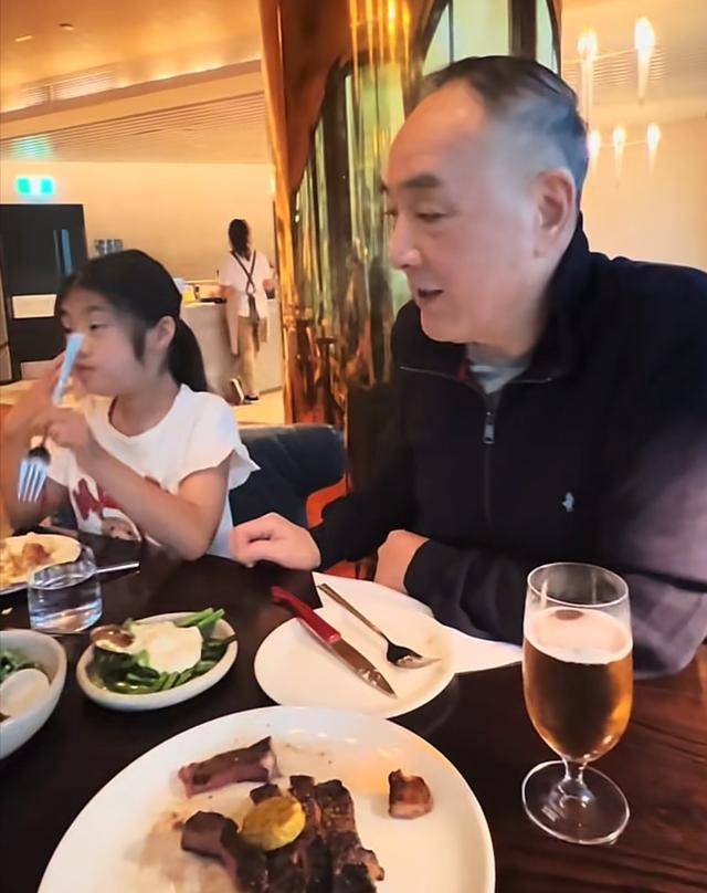王全有专门记录下了这一顿大餐,不仅有牛排,还有香槟,周围的环境看上去也是非常不错的。