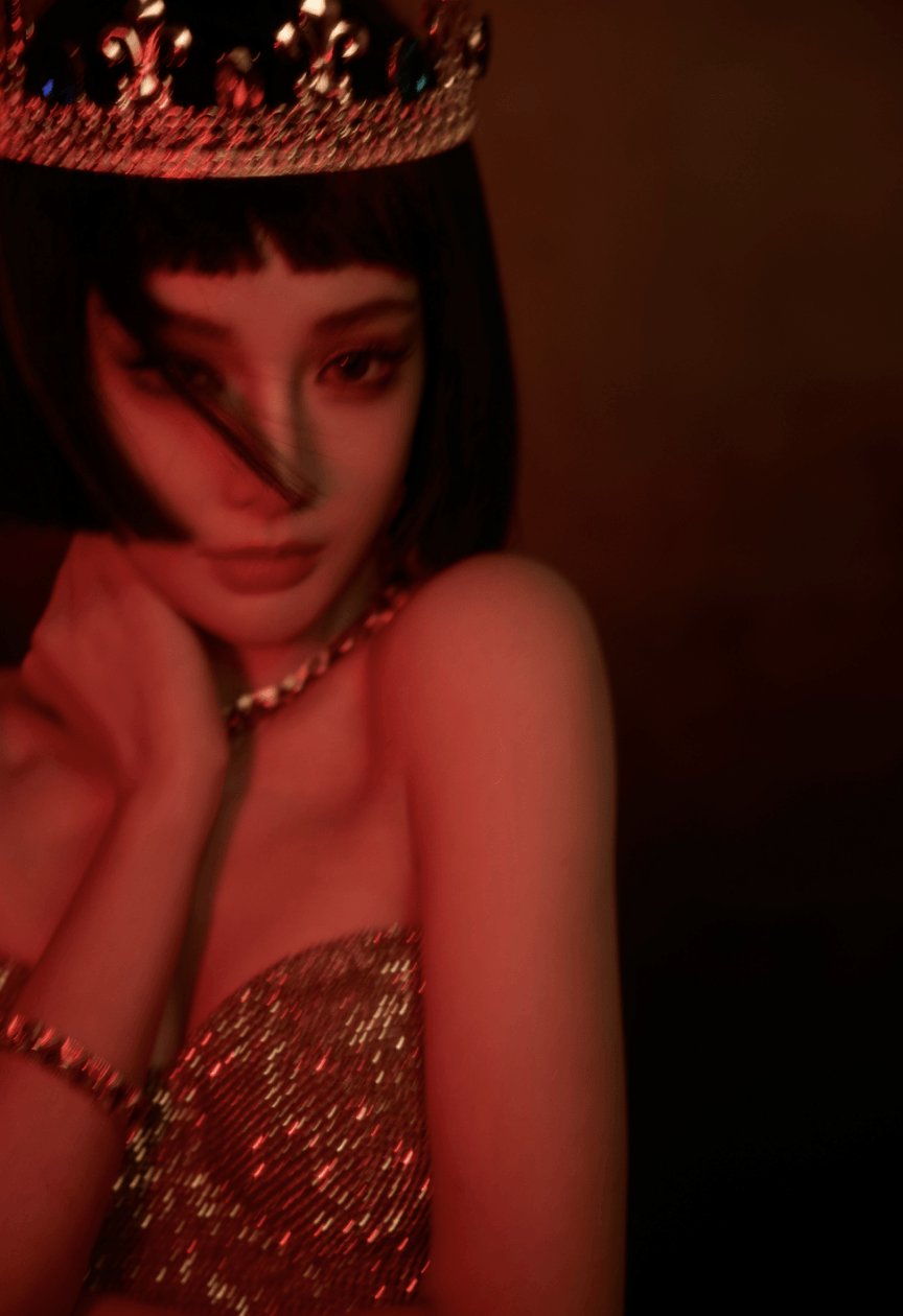 彭小苒暗调背景裹满神秘气息,姿态松弛又带着明艳气场。