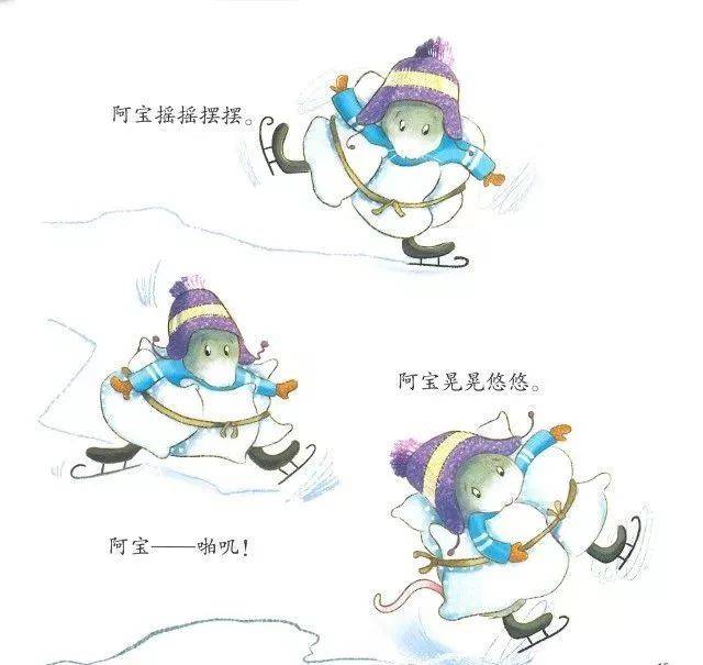 “池塘冻上了!”阿宝说,“我们可以去滑冰啦!”