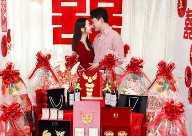 黄静蓝在社交媒体上,分享了几张过大礼的照片,桌上堆积的各种金器、海鲜等,也是引发了不少热议。