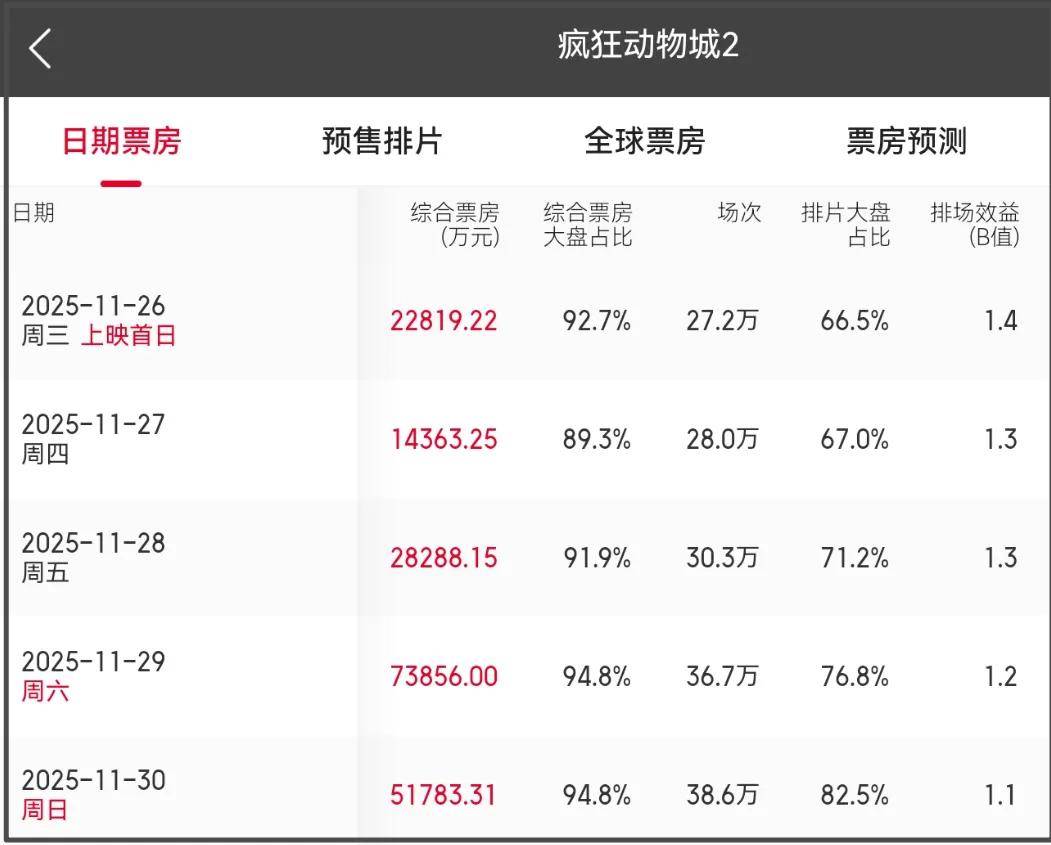 《阿凡达3》和《疯狂动物城2》同样是续集,同样是主打视听效果的外国大片,《疯狂动物城2》在工作日首映,一个周三日票房就破了2亿,到了周六、周日,一天票房破了7亿,一天票房破了5亿,远远把《阿凡达3》甩在了后面。