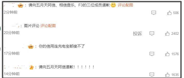 在朱孝天发文澄清后,评论区迅速被五月天的粉丝占领,他们纷纷留言要朱孝天向阿信、相信音乐以及F3的三位成员道歉。就事论事,粉丝的要求很合理,毕竟事端都是朱孝天挑起的,可偏偏他没有对具体的对象道歉。