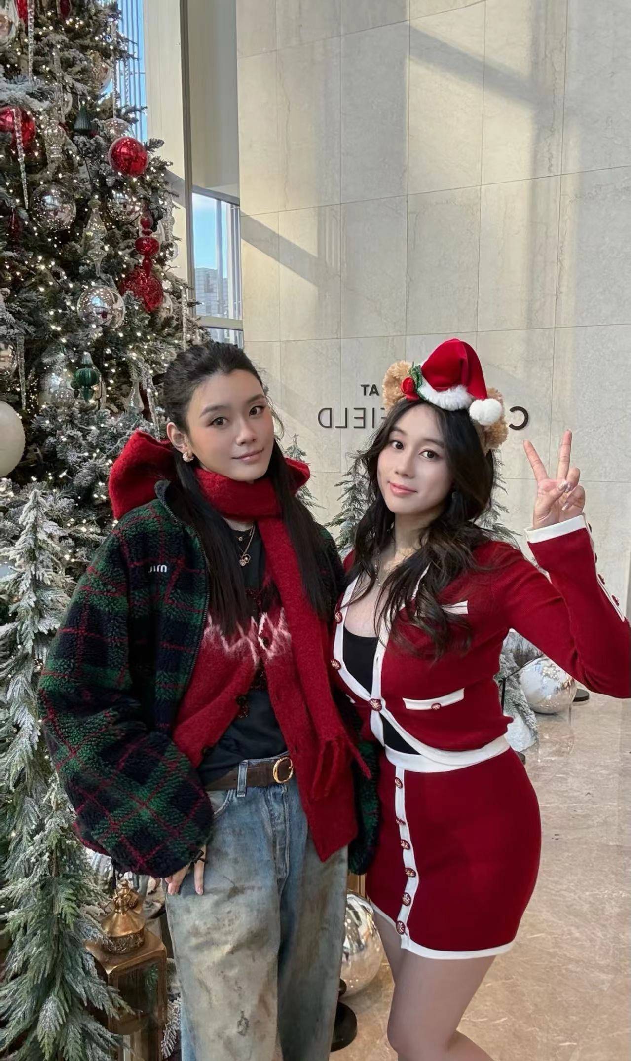 三人合照,妈妈四太站在中间,她们都穿着红色的衣服,显得喜气洋洋,应景圣诞节日的浓厚气氛。奚梦瑶和何超欣应该关系非常不错,她们都经常会一起外出旅游。奚梦瑶在身材姣好的小姑子面前,中性打扮,也是弥补了一些缺憾,显得很有个性,彰显出自己独特的魅力。