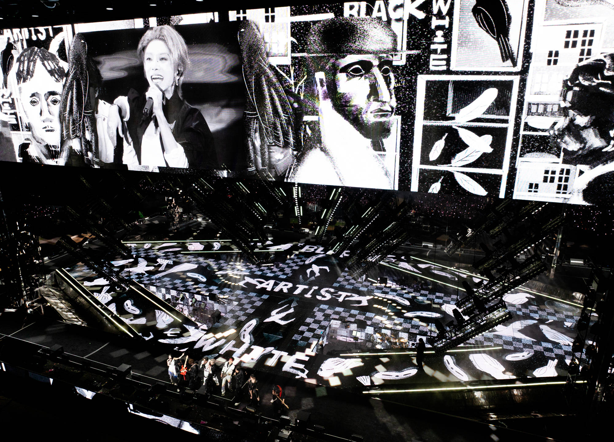 作为曾斩获缪斯设计奖、德国iF设计奖等多项国际权威奖项的舞美IP,本次舞台通过精密机械装置与光影系统的协同,升级呈现360°沉浸式观演空间。演出中,光影随曲风精准切换,《黑白艺术家》《七重人格》的能量漩涡光影、《温暖的房子》的具象化光影构建等,与歌曲意境完美契合。此外,《风之海》全新冬日版舞美,梦幻的冰雪世界,灵动的动物元素,都为现场增添了别样的视觉惊喜。