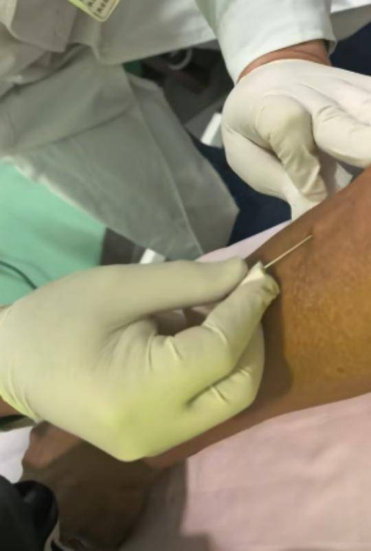 可没想到的是,上一秒还云淡风轻的何家劲,在被医生注射后,下一秒就开始哗哗大叫,接着医生又拿出另一根很粗的针,穿过何家劲的手臂,痛的何家劲面部扭曲。