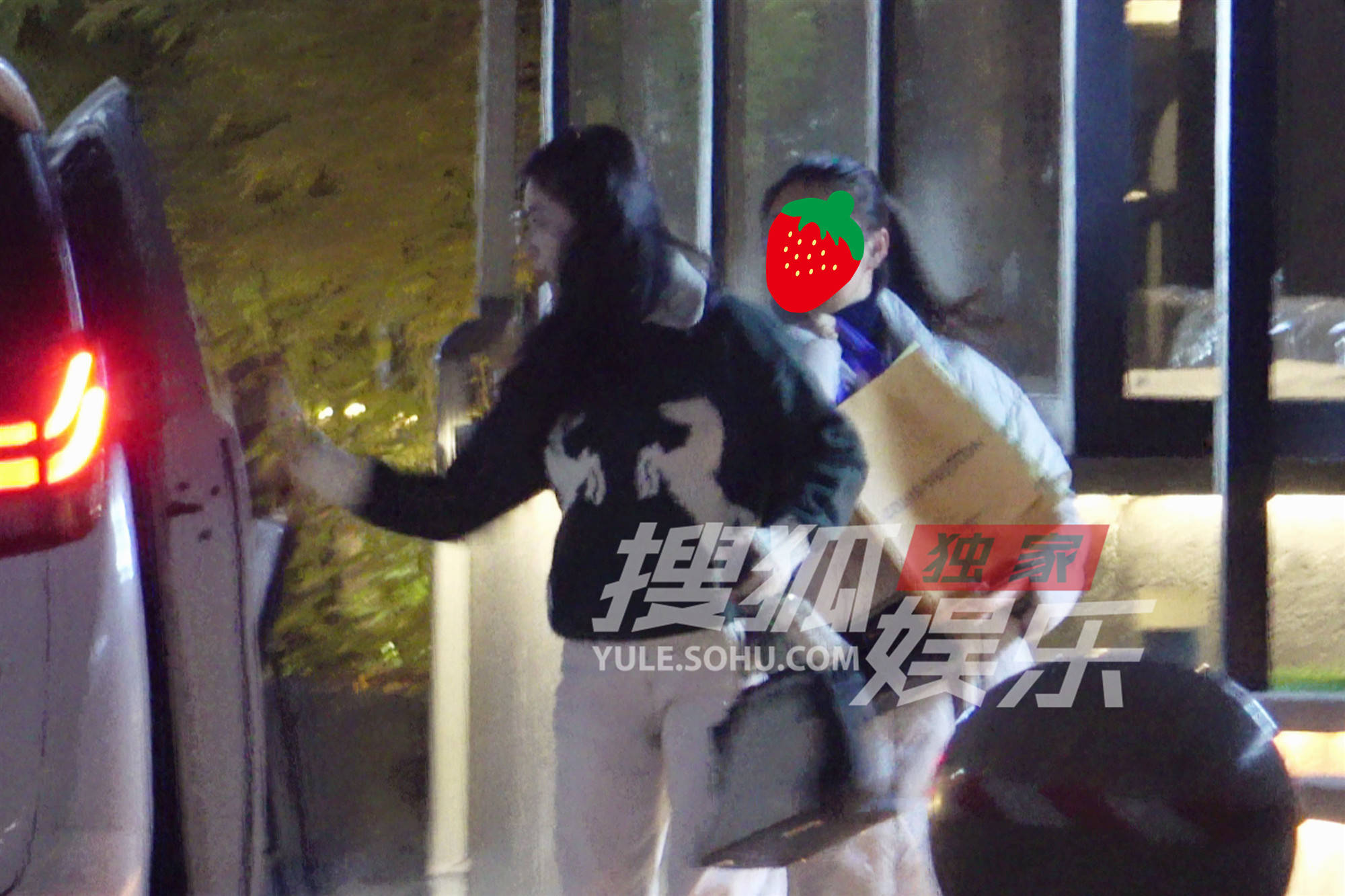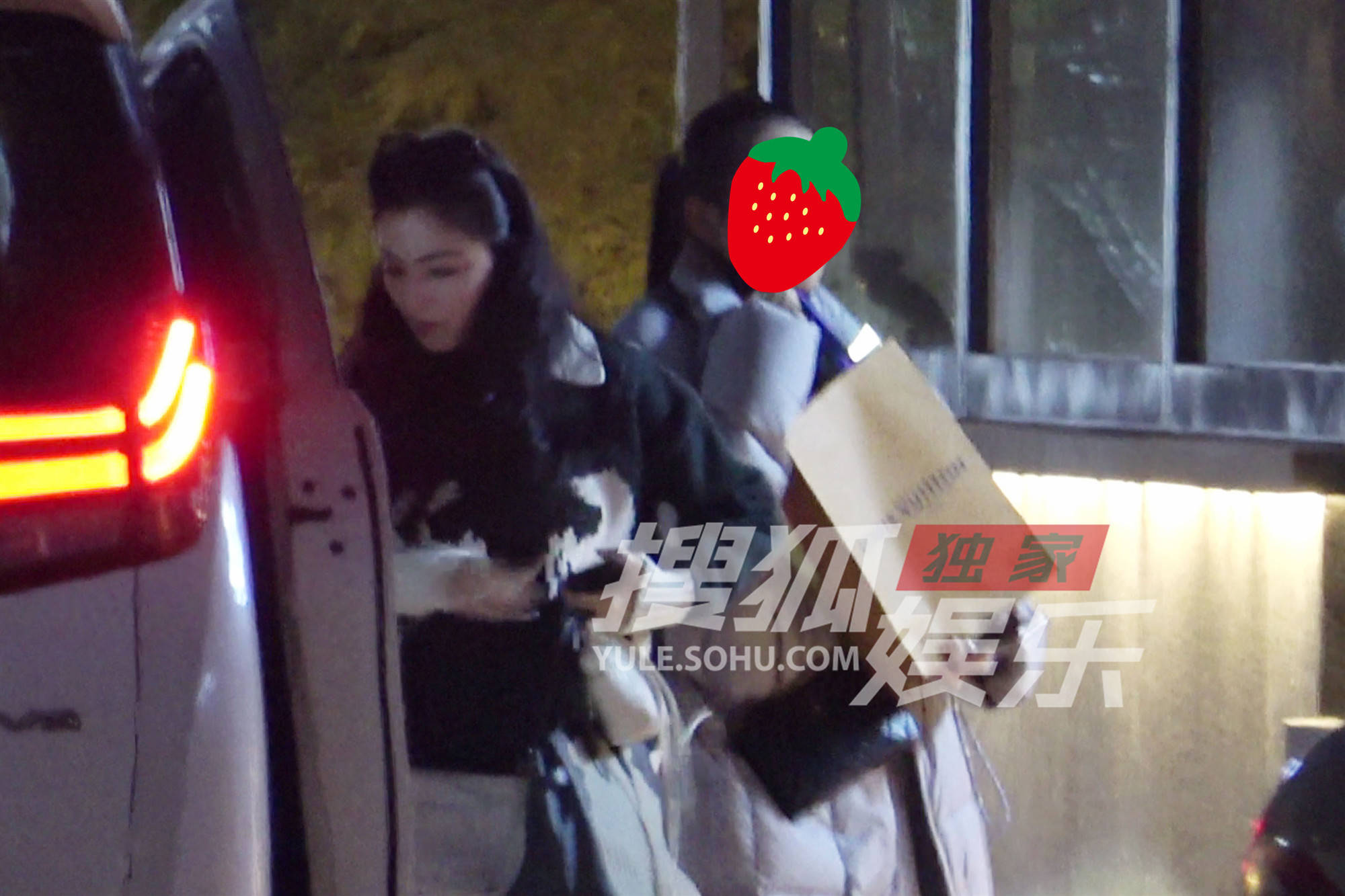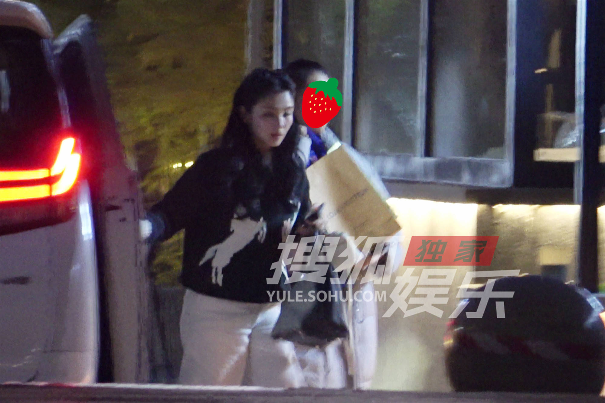 当晚,刘涛穿着厚实的毛衣,提着手袋。