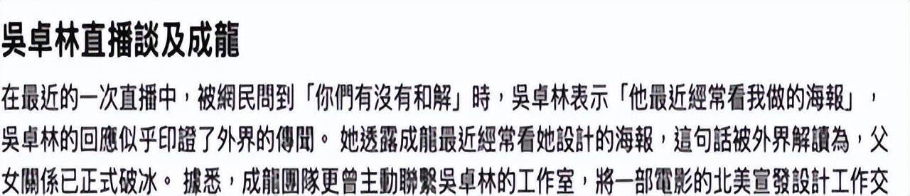 吴卓林在直播中透露,成龙最近经常看她做的海报,而且是是成龙的团队主动联系吴卓林的工作室,让她开始设计海报,