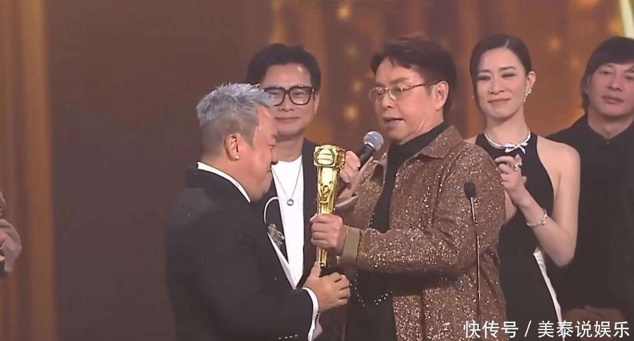 他的告别仪式是在TVB最盛大的颁奖典礼上举行的,场面相当盛大,邀请了不少重量级人物来见证。老朋友谭咏麟也特意出席,为他颁奖。两人紧紧相拥,这一幕带来了满满的回忆。