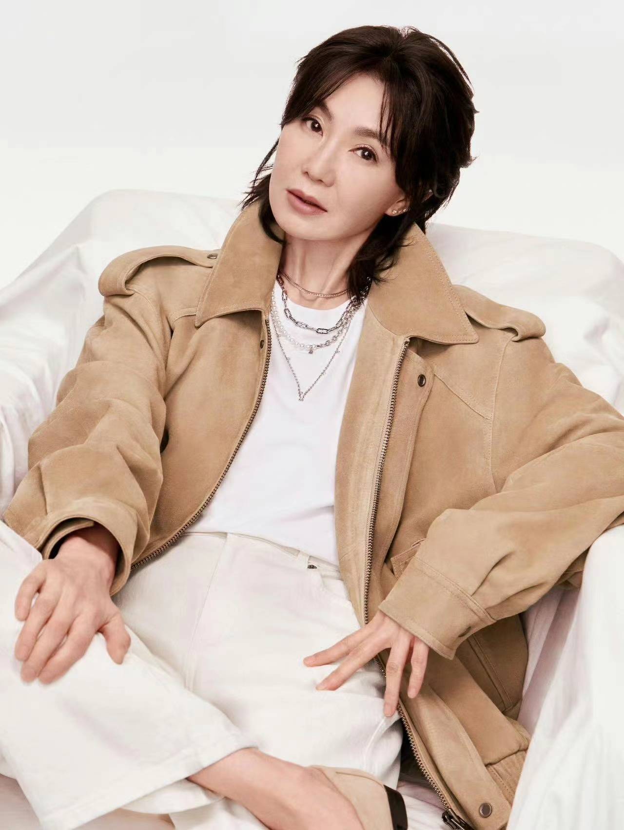 张曼玉可能头发也白了,只是染的吧,所以看起来像五十多岁,不像61岁.