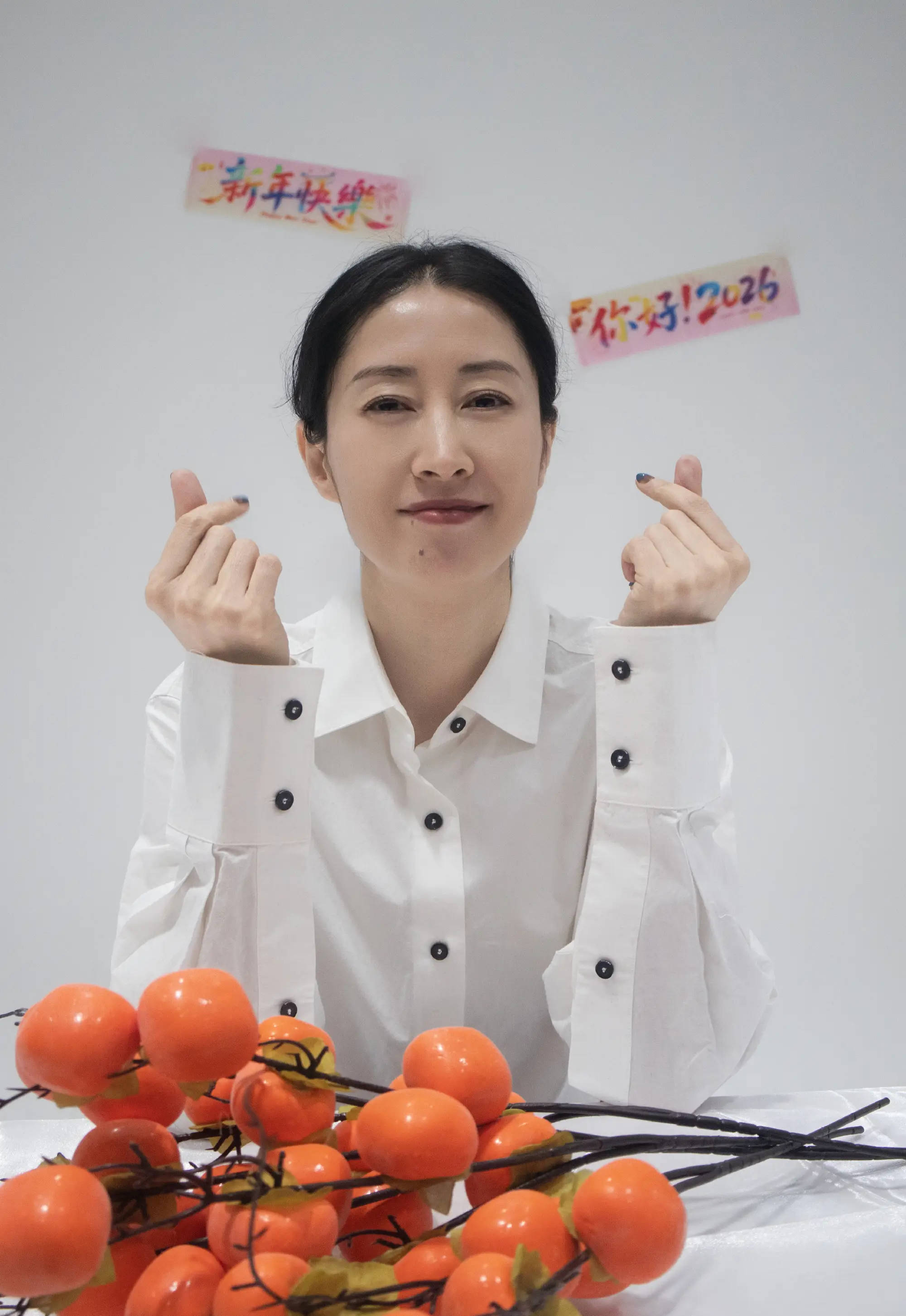 刘敏涛双手比心。