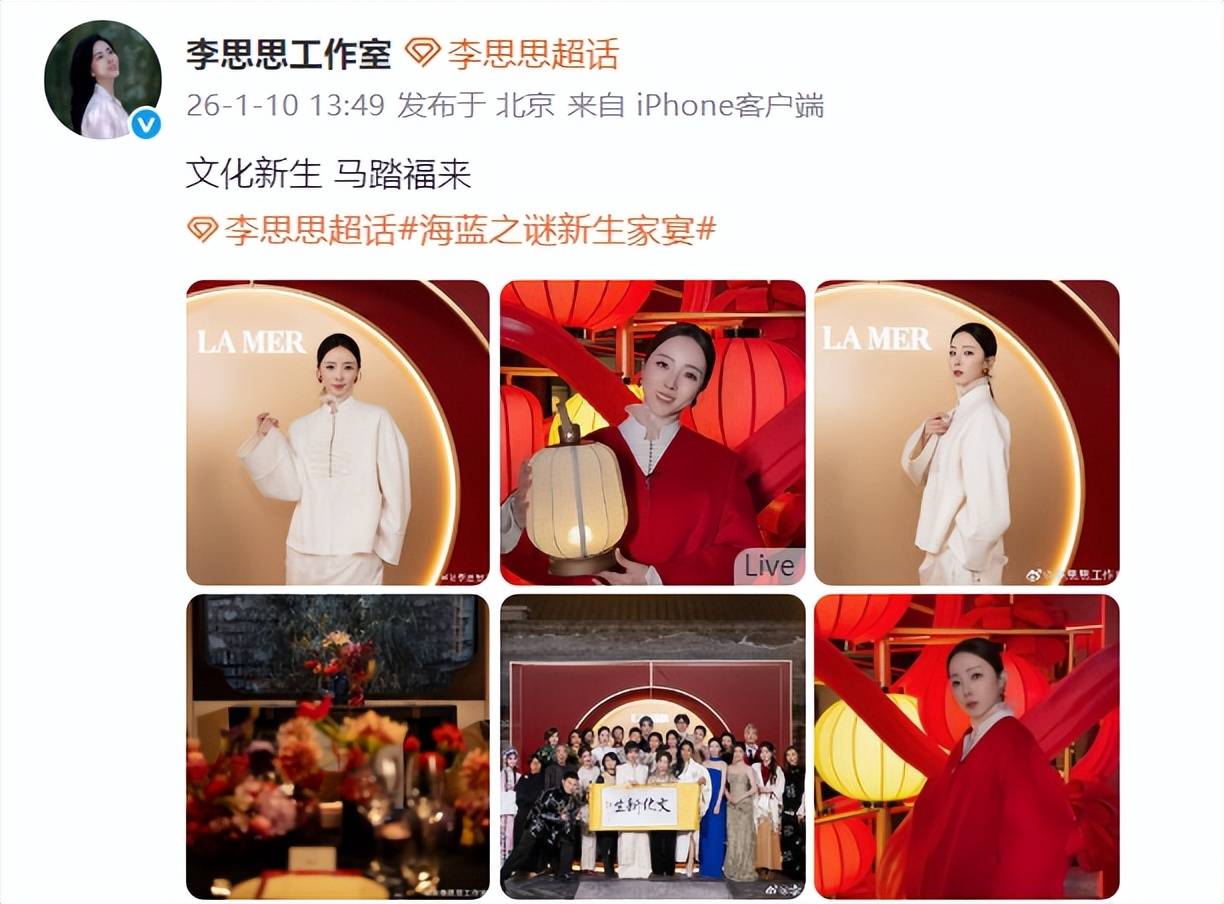 但是一个亮点也值得关注,那就是李思思在2025年度的出镜率极低,创历年之最,不管是主持商演还是直播带货,李思思在2025年度都很少出镜。所以李思思此次主持新生家宴活动也是一个开门红,那就是在新年刚刚开始的时候就正式开工了,我们也期待在2026年李思思能够经常出镜主持。