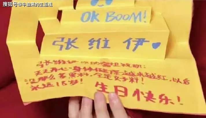 小酒窝给张维伊写了生日贺卡,小酒窝的字如其人很清秀,直呼张维伊的全名,希望张维伊没有黑料全是好料,越来越红!