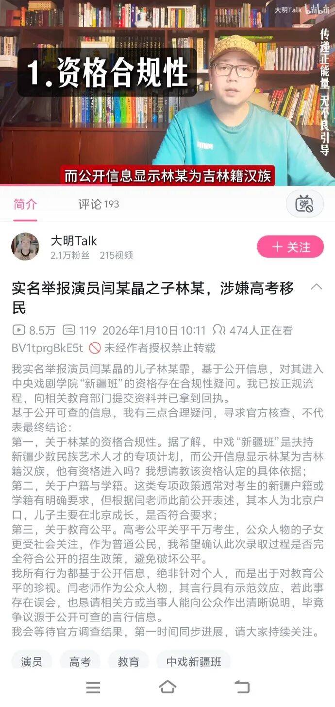 有网络博主实名举报林傲霏入学资格,质疑其汉族身份、北京户籍与新疆班政策冲突,要求核查教育公平问题。