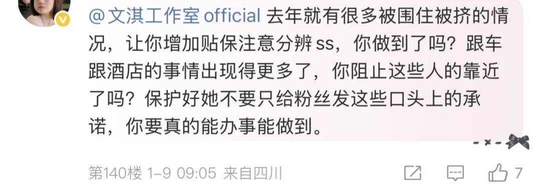 还向喜爱文淇的粉丝诚恳致歉,坦言让大家担心了,并承诺接下来会强化安保措施,全力保障文淇的人身安全与工作生活秩序。